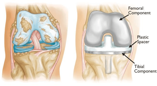 The worn-out bone and cartilage surfaces are carefully removed and replaced with high-quality metal and plastic implants that mimic the natural movement of the knee.